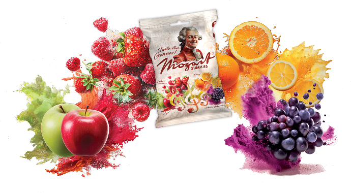Tauchen Sie ein in eine geschmackliche Ouvertüre, in der süße Harmonien auf feinste Bio-Zutaten treffen. Unsere Mozart Bio-Fruchtgummis sind eine genussvolle Variation orchestrierter Aromen: von fruchtiger Erdbeere & Himbeere, über edle schwarze Johannisbeere, bis hin zu beschwingtem Apfel, Zitrone und Orange.