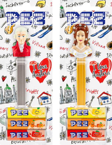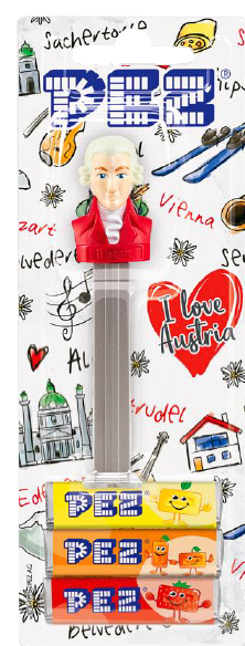 - PEZ Spender: Mozart/Sissi als PEZ Spender, im Blister einzeln verpackt.